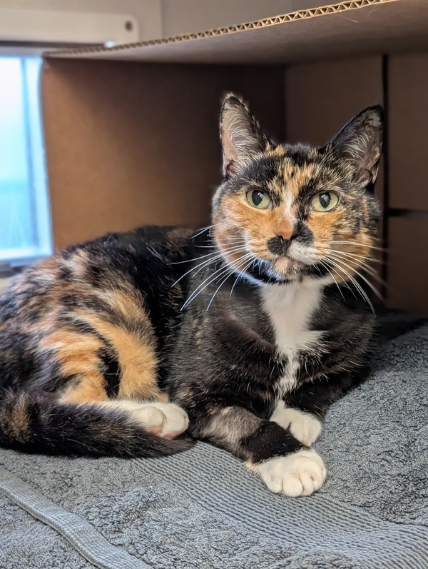 Pebbles is a lovely, sweet older girl who's ready to find her forever home. She has a gentle nature and adores spending time with her humans, making her the perfect companion for someone looking for a calm and affectionate cat.
