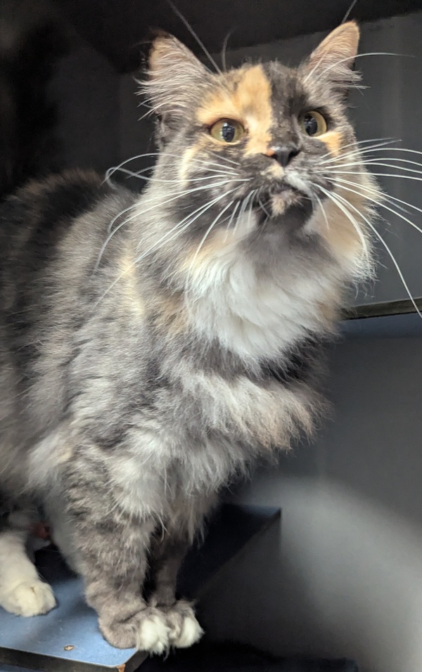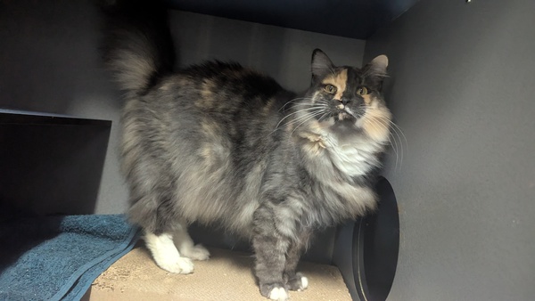While Narla has endless love to give, she can be shy at first and will need time, space, and gentle encouragement to truly come out of her shell. A calm, cat-savvy home with older children and plenty of cozy hiding spots-like igloos, tunnels, and quiet nooks-will help her feel safe and secure.