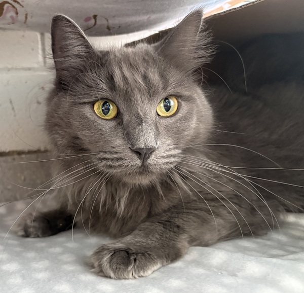 She thrives in calm, low‑traffic homes and prefers to be the only cat. Cozy hiding spots like igloo beds, boxes, and blankets help her feel secure - and once she's settled, she enjoys toys, towers, and scratchers too! 🧶💛