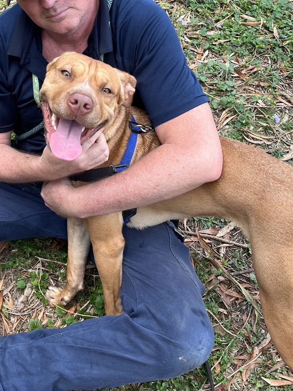It's likely that Pumba missed out on some early socialisation, and because of this, she can be unsure and fearful when meeting new people-especially men-and exploring unfamiliar places. But with kindness, consistency, and time, she has the potential to blossom into a loyal and loving companion.
