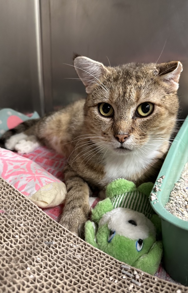 Chef Bacon may not whip up gourmet meals, but he's a master of quiet charm and curious exploration. This gentle soul came from a hoarding situation, where he likely spent time both indoors and out, missing out on some early socialization. As a result, he's a little wary of touch and new environments-but with patience and love, he's ready to blossom.