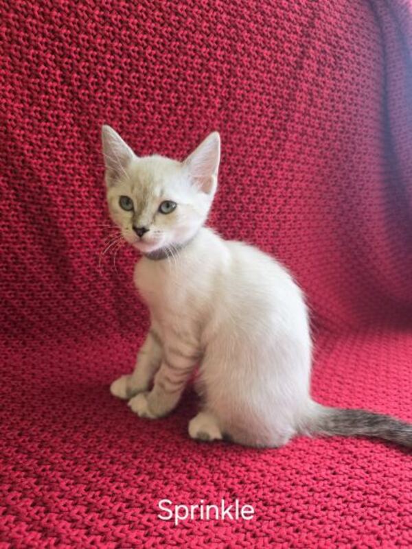 Sprinkle is a sweet, affectionate little girl who loves to both play and relax. She enjoys following her sisters around and joining in their fun, but she's also content to find a cozy lap for a nap. With her gentle personality and loving nature, Sprinkle would make an ideal family companion.