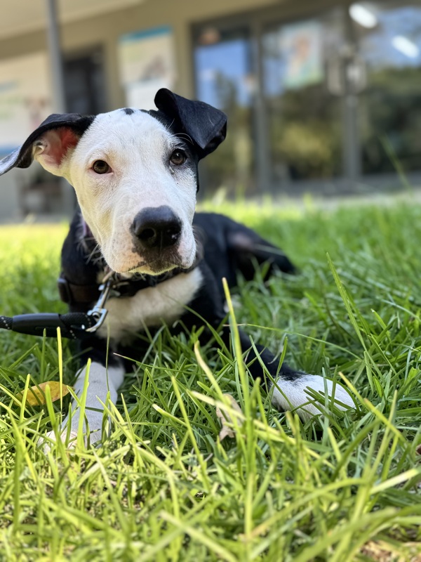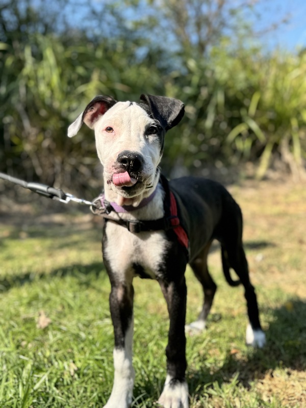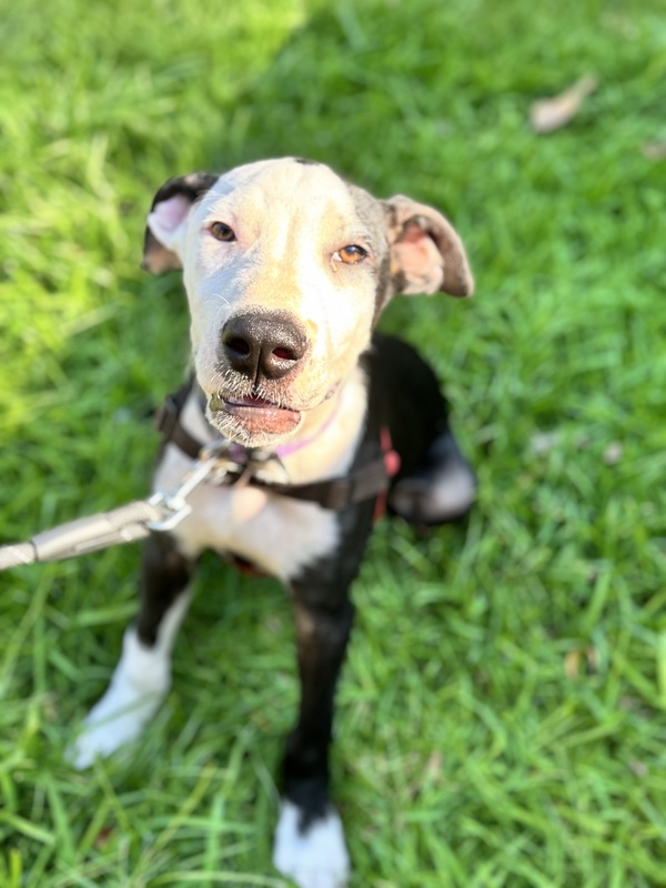 I love to romp around and play games, especially if they involve a bit of roughhousing, my sister and I get up to lots of mischief! I'm also quite the foodie - treats are the way to my heart! Despite my playful side, I'm really sweet and mellow too, although a little goofy sometimes! I enjoy making new friends and am always up for a cuddle or a gentle pat, but I am a big girl, so you'll have to be prepared for me to take up half the bed! I'd love to go to a home with another dog so if you have a friend for me at home then I'd love to meet them first! I am still young so you will need to continue my training please, I want to be the best girl! If you're looking for a loyal companion to bring joy and fun to your home, I'm your pup!