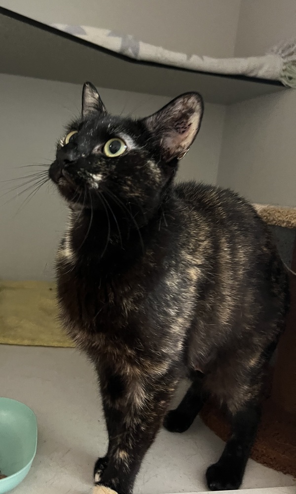 To make her feel safe, she'll need access to scratch posts, cat trees, hides like cardboard boxes or igloos, and shelves or dressers that provide both high and low safe spaces around the home. Dottie's ideal adopter will be understanding and patient, recognizing that she may be timid at first but will blossom once she settles in. She may take some time to feel comfortable enough to show her true personality.
