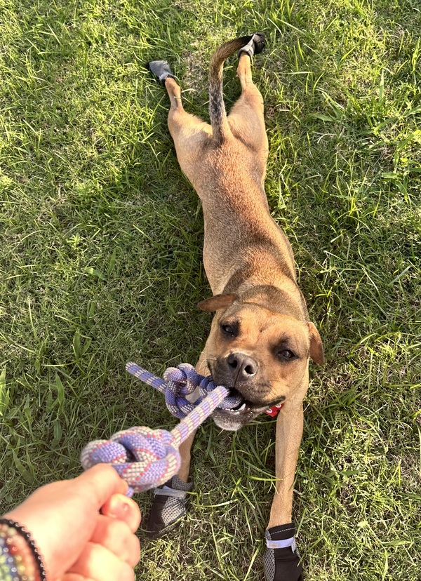 This playful pup is ready for a fresh start in life and would love to spend her time as your little shadow.