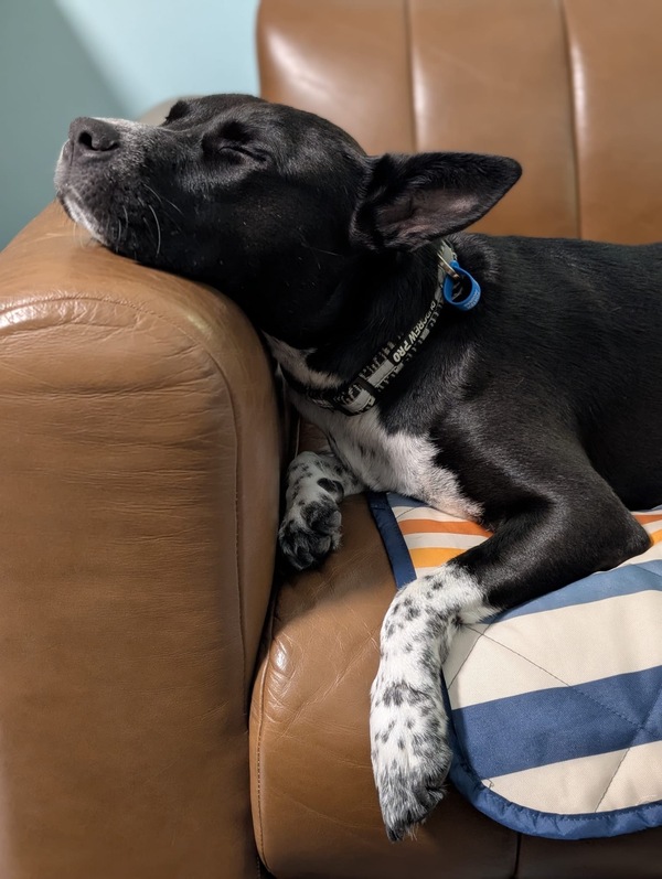 Meet Oreo - a sweet, affectionate girl with a heart full of love and a gentle soul. Oreo has been through a lot, including a past dog attack, so she can be a bit anxious around other dogs. She's learning to trust again and needs slow, respectful introductions at her own pace. Oreo adores her people and thrives on closeness - she'll happily curl up in your lap and shower you with kisses. She walks calmly on lead and enjoys exploring at her own rhythm. Currently recovering from heartworm, Oreo is looking for a calm, indoor home where she's truly part of the family. She's not too fussed about toys but may become more playful once she settles. Oreo would do best with older children and someone home often, especially during her transition. She can meet other dogs but is best matched with gentle, social companions. No dog parks or off-lead areas, please. If you're ready to offer patience, love, and a safe space, Oreo will be your loyal best friend.