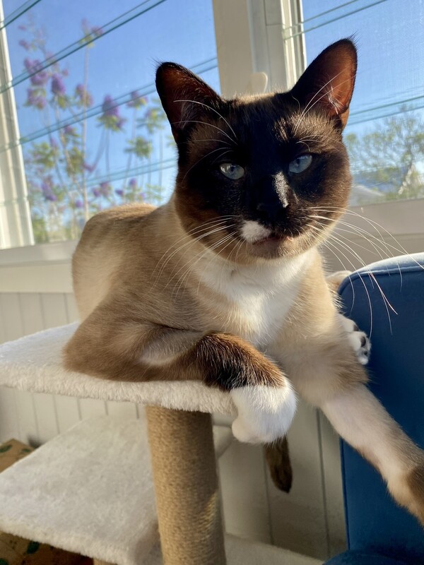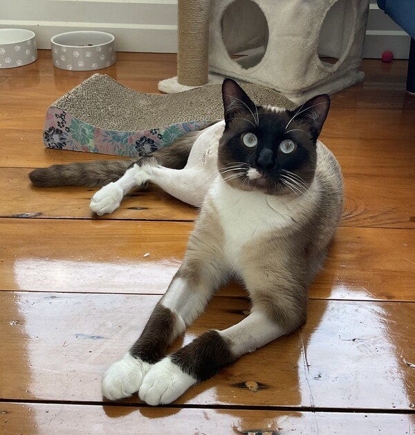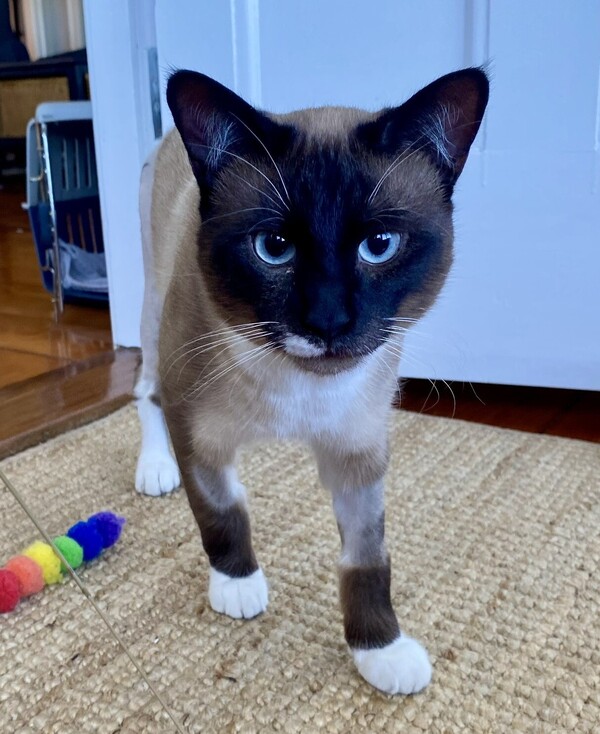 This boy has a very particular taste in toys-he's all about the wand! Forget the fluffy attachments; he prefers the wand itself and the hook for his play sessions (he thinks its a fly). He'll even head to his favourite carpeted play spot and politely ask you to join in. He doesn't play solo, so his ideal home is with someone who has time and interest to engage with him.