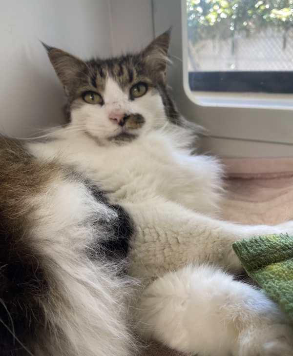 Kevin is a big-hearted, big-bodied boy with a personality that's pure charm and chill! At 8 years wise, he's mastered the art of relaxation - often found sprawled on his back, legs stretched out like a feline yoga master, soaking up all the love and attention he can get. Confident, friendly, and full of character, Kevin is the kind of cat who makes himself right at home and brings warmth to every corner of it. He's a fantastic match for families of all kinds, including first-time cat adopters and respectful kids of any age. Kevin's playful side shines with toys, towers, and scratchers, and his confident demeanor makes him a great candidate for harness training if you're up for a little adventure together. He may also do well in a multi-cat home, given the right introductions. If you're looking for a laid-back, loving companion who's equal parts cool and cuddly, Kevin's ready to stretch out beside you and make your home his own! :)
