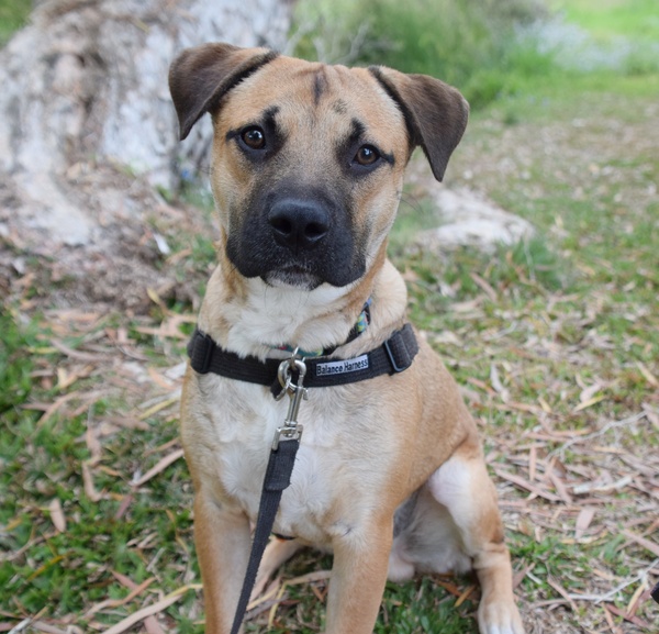 Dozer is an 11-month-old American Staffordshire Terrier x Cattle Dog with a heart full of love and a whole lot of personality. Sweet, social, and incredibly affectionate, he's the kind of dog who thinks he's a lap dog, despite his size! Dozer thrives on human connection and would love a home where he's included in daily life and given plenty of cuddles.