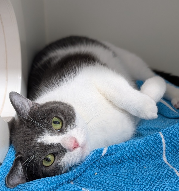 Meet Asher! Asher is a sweet young boy with a playful spirit and a heart full of love. He adores chasing string toys and will happily roll around just to catch your attention for cuddles. With his affectionate nature and gentle charm, Asher is sure to become a cherished companion in a calm and loving home.
