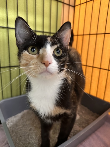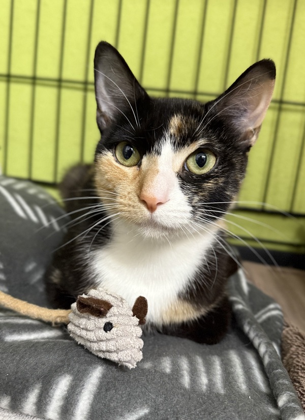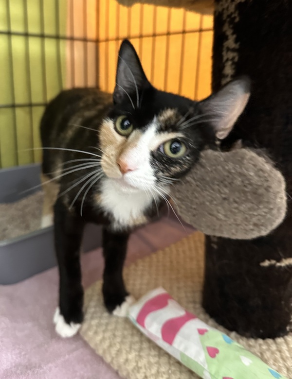 Bling is a sensitive and resilient young cat who's slowly learning to trust the world again. She came into care initially overwhelmed, but with some time, quiet, and routine, Bling has begun to gain confidence and show glimpses of her sweet personality.