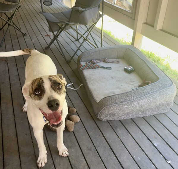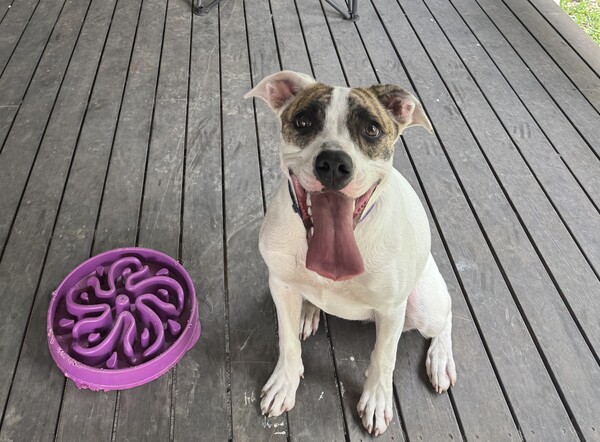 Meet Lilo! This sweet American Staffordshire girl is full of personality and charm. Lilo is an energetic, playful pup who loves toys and enrichment activities-she'll happily dig up hidden treasures and keep them close! She's very affectionate and thrives in a calm, home environment where she can relax and show her best self. Lilo has already made great progress with basic manners and responds well to positive reinforcement training. She's social, loves engaging with people, and is eager to learn. While shelter life can be stressful for her, in foster care she's settled beautifully, sleeping through the night and enjoying quiet time. Lilo will do best with a patient, loving family who can provide structure and enrichment to keep her happy and confident. If you're looking for a smart, playful companion who will reward you with endless love, Lilo is your girl!