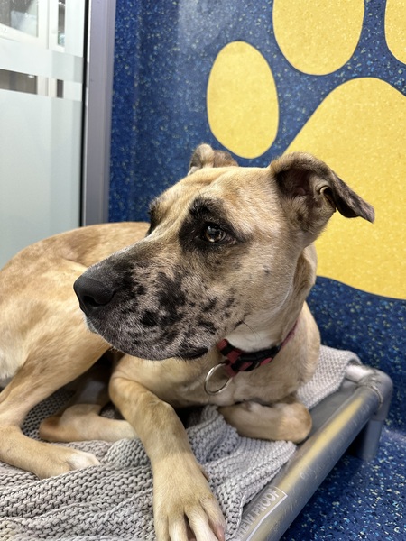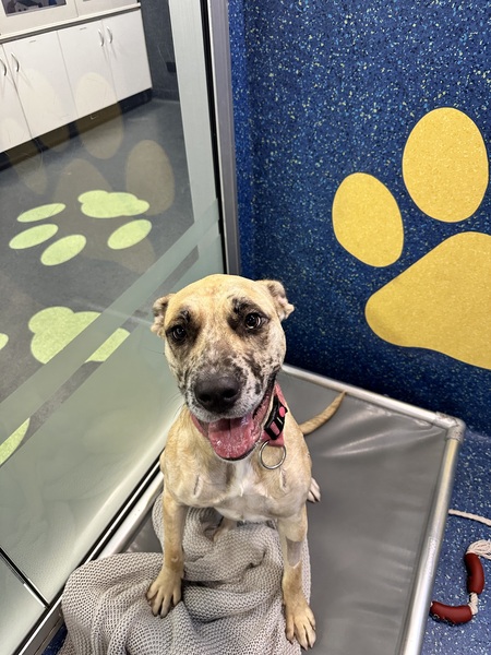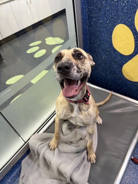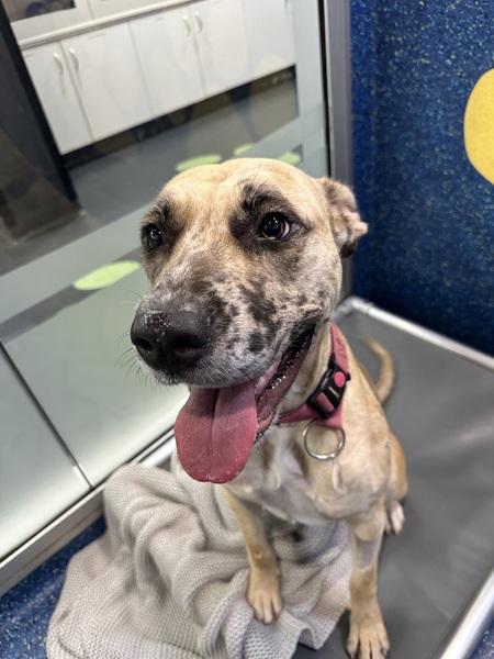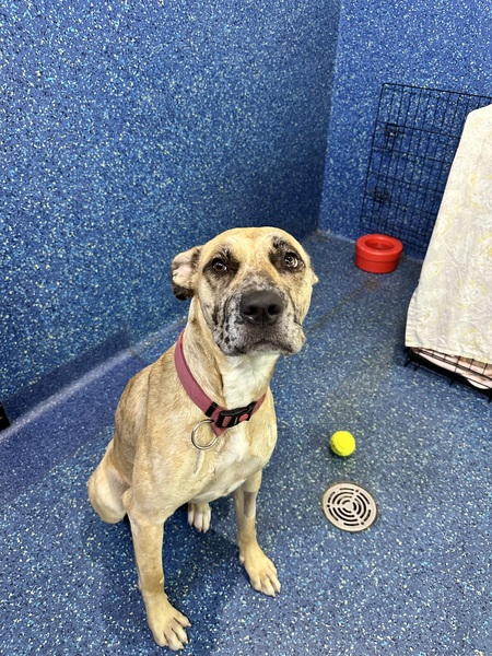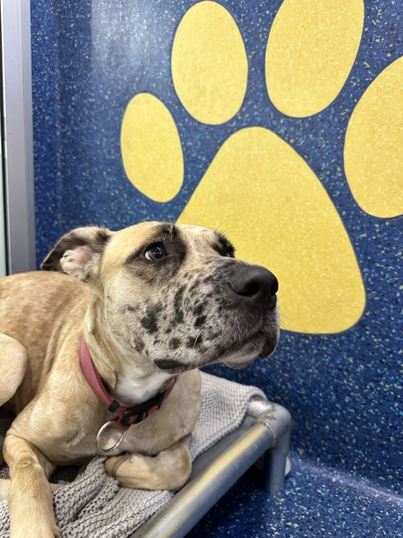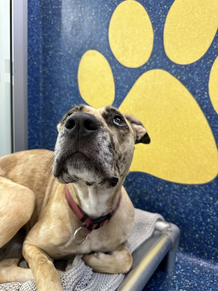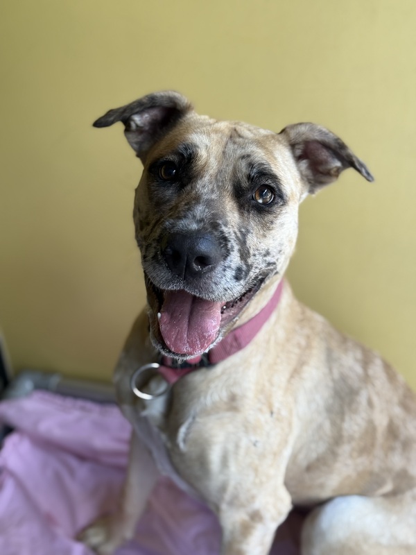Burrata is a sweet, social girl who thrives in a loving, active home where she's included in daily family activities. She bonds easily with those around her, greeting people with a wiggly body and wagging tail. Burrata LOVES her food and already knows how to sit. She'll do well with continued training, especially learning basic cues and some fun tricks. As she settles into her new home, she may become more playful and excitable. Burrata enjoys using snuffle mats and would benefit from enrichment feeding, gradually increasing difficulty. She can be a little unsure of sudden close handling but recovers quickly. Burrata is open to the right family, but it's recommended to meet all children before adoption to ensure she feels comfortable. She'd prefer to be the only dog in the home, as she thrives with undivided attention and affection.