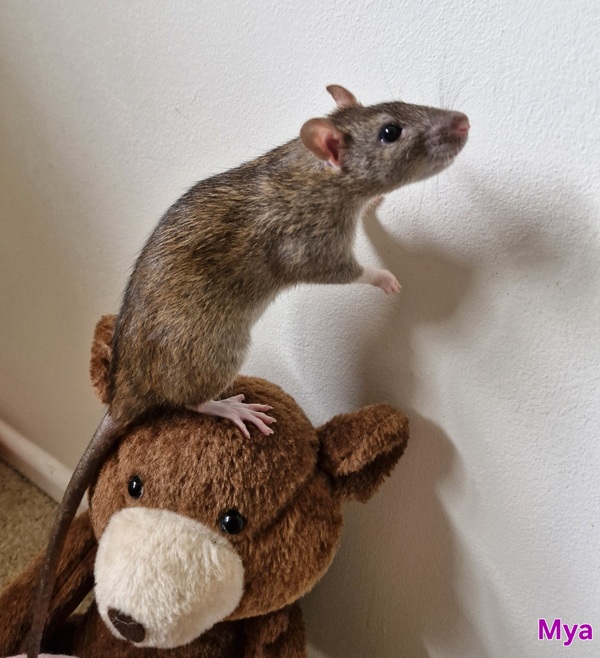 Meet Mya, the confident queen of the trio! She's a sleek black beauty who loves her hammock time and enjoys exploring once she's had a good run. Mya can be a little sassy if startled in her hammock, but she's not aggressive-just likes her personal space respected. Once she's out and about, she's curious and will happily accept gentle pats. If you're looking for a smart, independent girl with a big personality, Mya is your match!