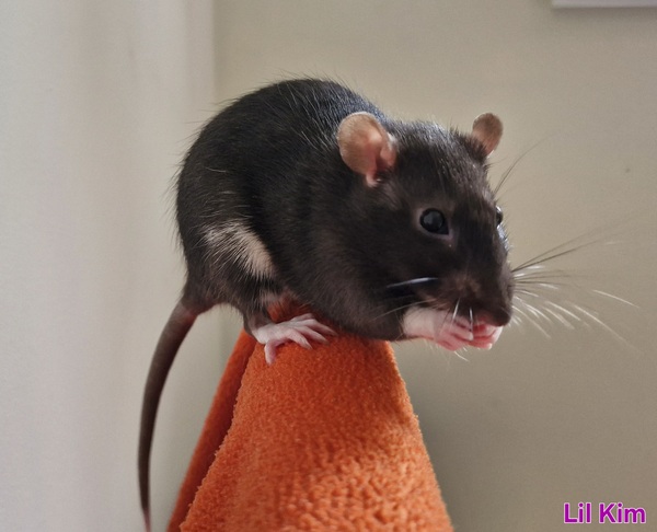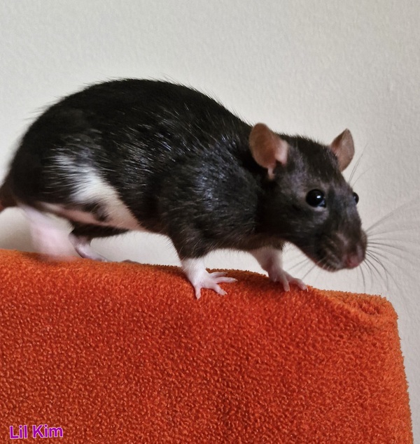 Say hello to Lil Kim, the adventurous spirit! This bold little explorer is always the first to check out new spaces and toys. She's gentle, sweet, and loves splashing in a shallow water bowl (so keep one handy!). Lil Kim thrives on playtime and will bring endless entertainment to her new family. If you want a rat who's full of life and loves to discover, Lil Kim is the one for you!
