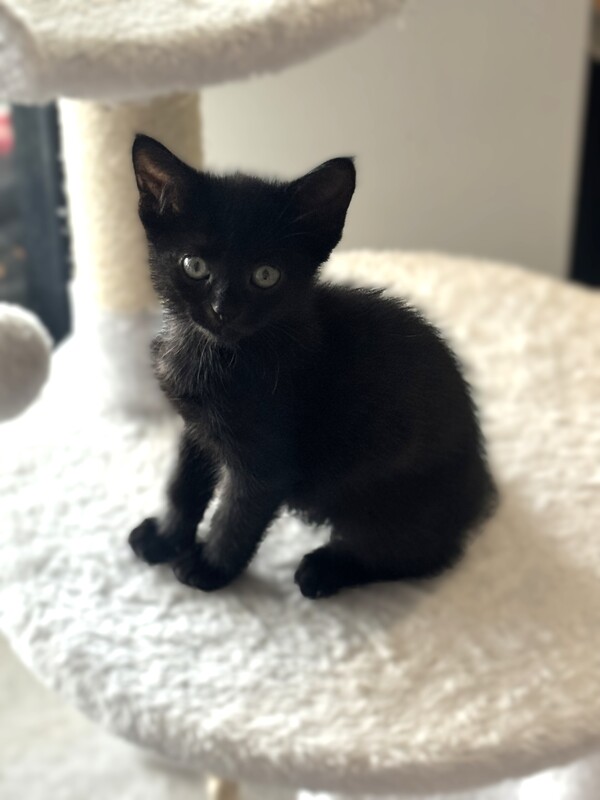 This handsome little black cutie is ready to steal your heart and find his forever home! Bear is the perfect mix of playful and affectionate-he loves chasing toys and then curling up for snuggles. He's a total cuddle bug who will happily climb right up to your face for kisses and love.