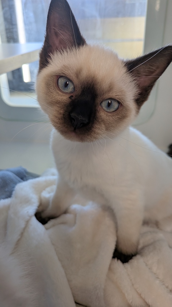 Hi! I'm Daisy, a kitten with a heart full of love and paws ready to play! Here in my cozy shelter spot, I spend my days dreaming of a forever home where I can share my cuddles and playtime. I adore being around friends who enjoy gentle games and warm laps. If you're looking for a sweet companion to bring joy and laughter to your home, I'm your girl! Why not come and meet me? I promise to be the purrfect addition to your family, filling our days with love and fun!