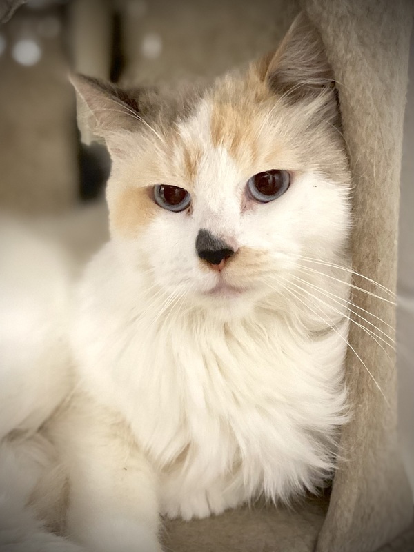 If you're looking for a low-key companion, who'll curl up at the foot of your bed and remind you how wonderful it is to have a relaxing, beautiful feline friend, then Millie is the lady for you. There's no drama with Millie - she's just gold! It'll just be watching the TV together or listening to music. She's gentle and affectionate plus absolutely stunning to look at. Millie has the most beautiful, thick, white coat with lilac/ginger tabby markings. Her clear, blue eyes are outstanding. Here are some suggestions for her care:-
