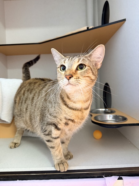 Meet Spice. She came into our care as a stray with her newborn kitten, very frightened and overwhelmed, understandably. Nonetheless, in a remarkably short time, Spice settled down and she developed a great relationship with the volunteer staff here at RSPCA, soliciting attention and enjoying the affection they have given her. Her three favourite things are food, gentle attention and the companionship of her human friends. What a great combination for an ideal pet.