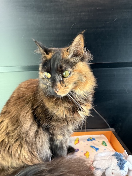 Sally is a people-cat through and through, happiest when she's near her humans and getting the love she deserves. Her beautiful coat will require a regularly brush to keep her flowing locks in beautiful condition.