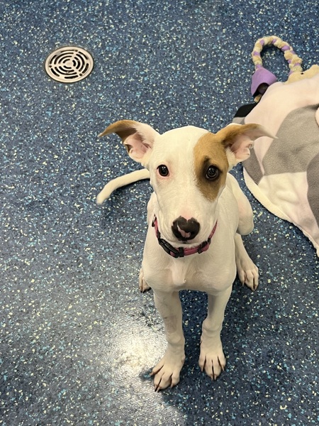 Noodle is a worried little pup who warms up quickly with calm, gentle interactions, revealing her adorable, goofy personality. She's eager to learn and will thrive with patient guidance as she grows in confidence.
