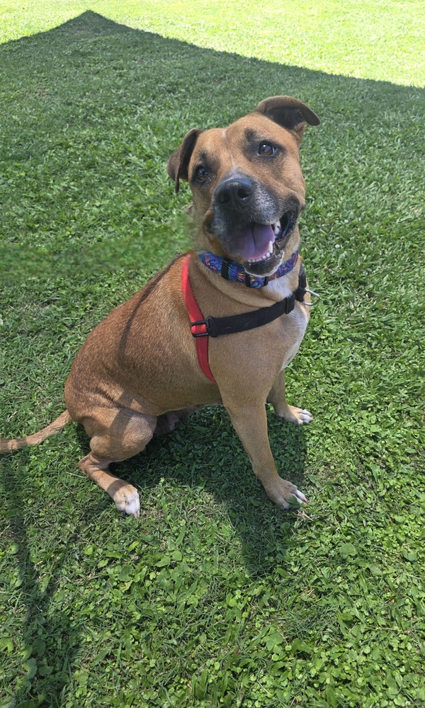 Trigger is a sweet, playful, and outgoing girl with a big personality and an even bigger love for fun-especially when water is involved! She absolutely enjoys swimming and splashing around, making her a great match for an active home that embraces her adventurous side. She loves playing with her ball and squeaky toys and can get a little enthusiastic when excited. Because of this, she's best suited for a home with children aged 8+ who understand how to interact safely and gently.