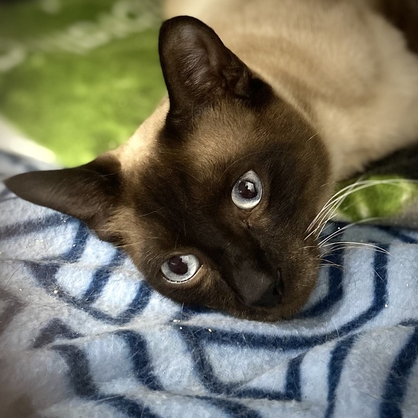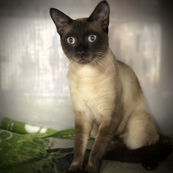 ** I have beautiful blue eyes and a smooth, creamy coat with chocolate points.