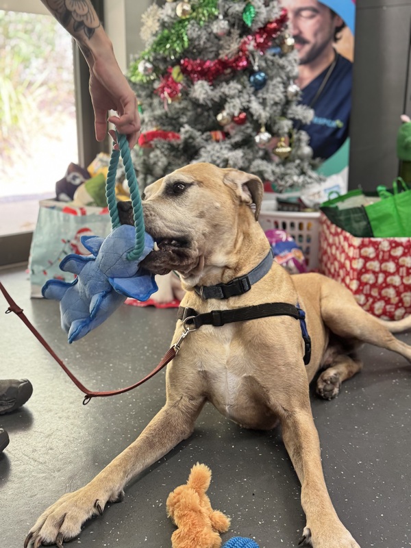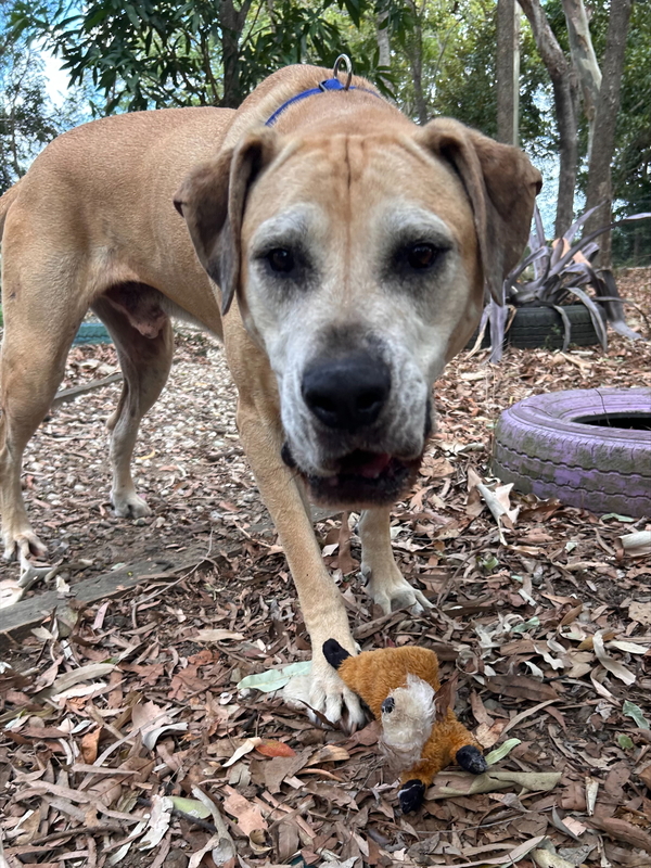 Hi, I'm Wilson! I might be an older guy, but I still have lots of energy! I absolutely love going for my daily walks and will bark at you if you're taking too long! I can get a bit too excited and pull but I'm a very good listener and will slow down if you ask me to! I'm a pretty chill guy, I walk well with the other dogs here, I even ignore their silliness, but I don't appreciate them invading my space. So will definitely need a home with no pestering dogs please! I could be open to another older chill female, but preferably an only dog home where I can get all the loving! I can take some time to warm up to people I don't know, but once I trust you, I absolutely love you! I turn into a goofy boy during play time; I love playing tug with you and fetching the ball! I can be a bit silly during tug and grab where you're holding but if you tell me to leave it, I'll listen straight away! Now because I'm a bit of an older guy I do have some stiff joints, but that can be easily managed and other than that I'm in perfect health! So, if you think I'm your perfect match then come meet me today!