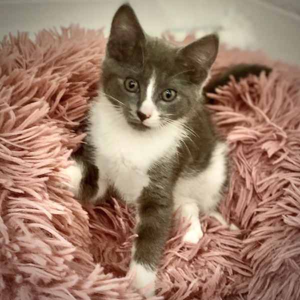 Little Pawsy has come to the Shelter to find a loving home. Pawsy has beautiful soft eyes and a very gentle nature. She has a sweet 'wallflower' personality where she likes to check things out before she becomes involved. When she has become comfortable with you, she will respond with lots of purrs and cuddles. Pawsy has a soft grey and white coat in a tuxedo style. We suggest the following care:-