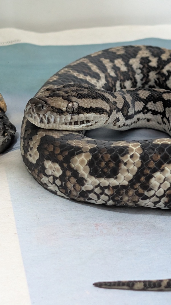 Hi my name is Dorothy and I'm a stunning Murray-Darling Carpet Python. My species, as my name suggests, live along the Murray-Darling Basin in central and western New South Wales and Victoria, reaching into southern Queensland.