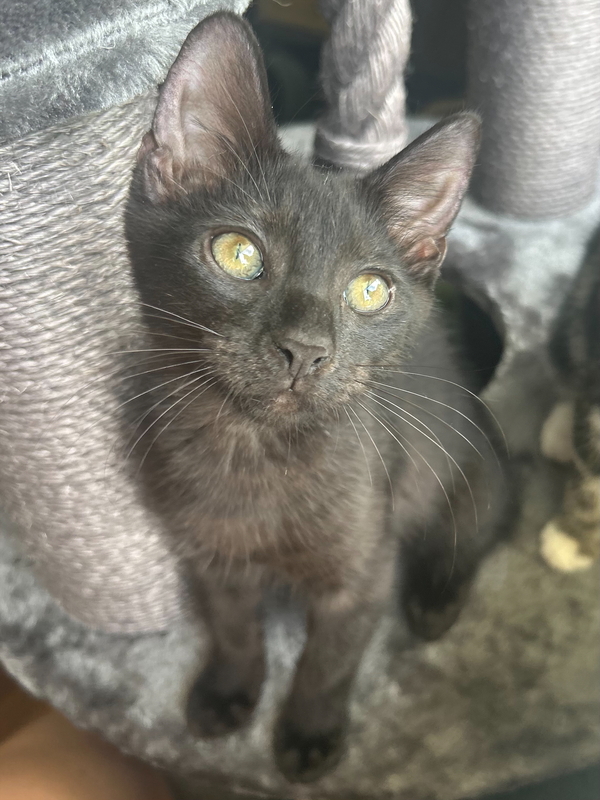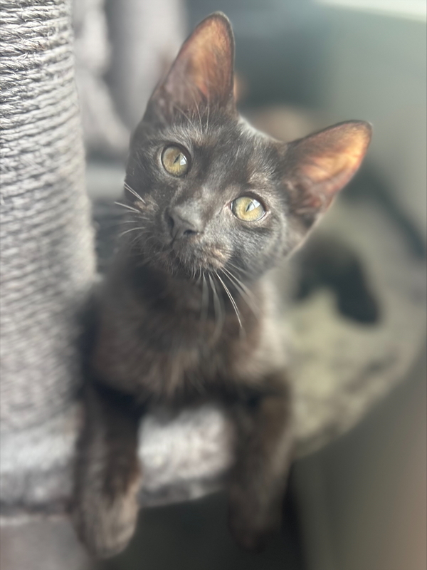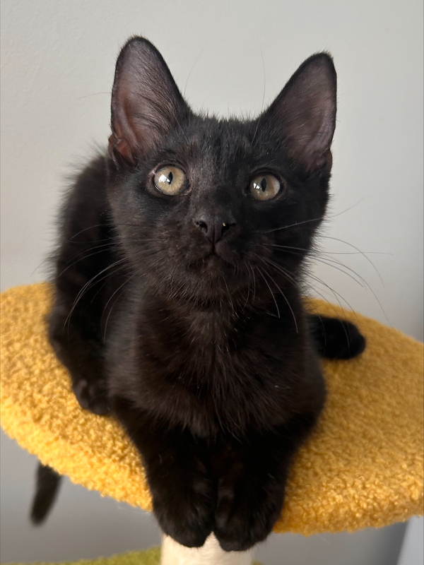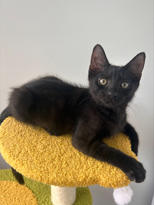 Hi! I'm Toe! I've been told I'm the perfect boy! I'm the right amount of sweet and playful! I'm happy to entertain myself with toys or playing with the other kitties but am also so happy to play with you too! After all that play, I love a good cuddle on the couch, I'm just the sweetest boy you'll ever meet! I like to get up close and personal to tell you how much I love you, and my big purrs will let you know too! I'm super friendly, greeting everyone with a sweet meow and a nudge of my head. I met some older cats and dogs in foster; I'm a very respectful boy and didn't mind the dogs! I dream of a home where I can be your loyal companion and can cuddle up in bed with you. So, if you're looking for a playful, loving kitten to fill your days with joy and your nights with cuddles, I'm the perfect match for you!