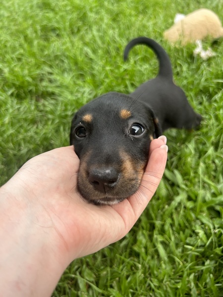I'm a black and tan pup with soft eyes and a calm, thoughtful nature. I like to take things in, watch what's going on, and then decide if I'm ready to join the fun - and when I do, I'm all in.