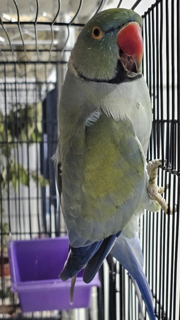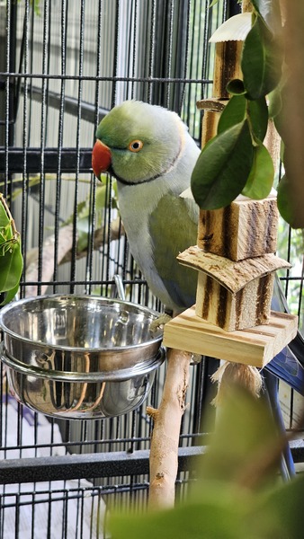 Chicken Little is a male Indian Ringneck who needs a calm, understanding home. He isn't a hands-on bird and may always prefer space, but he deserves a life without pressure or expectations. π