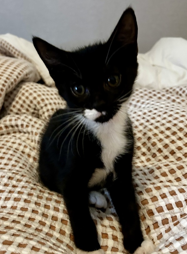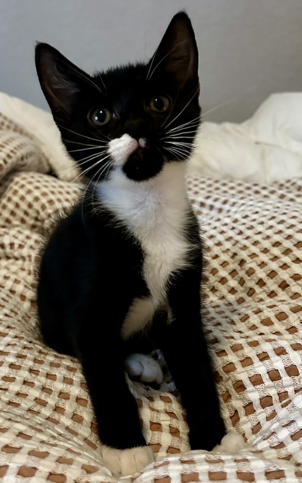 I'm a bright little black‑and‑white girl with big curious eyes and an even bigger love for people. I'm playful, affectionate, and always ready to explore whatever interesting thing catches my attention. I adore gentle pats, warm hands, and being close to the humans I trust.