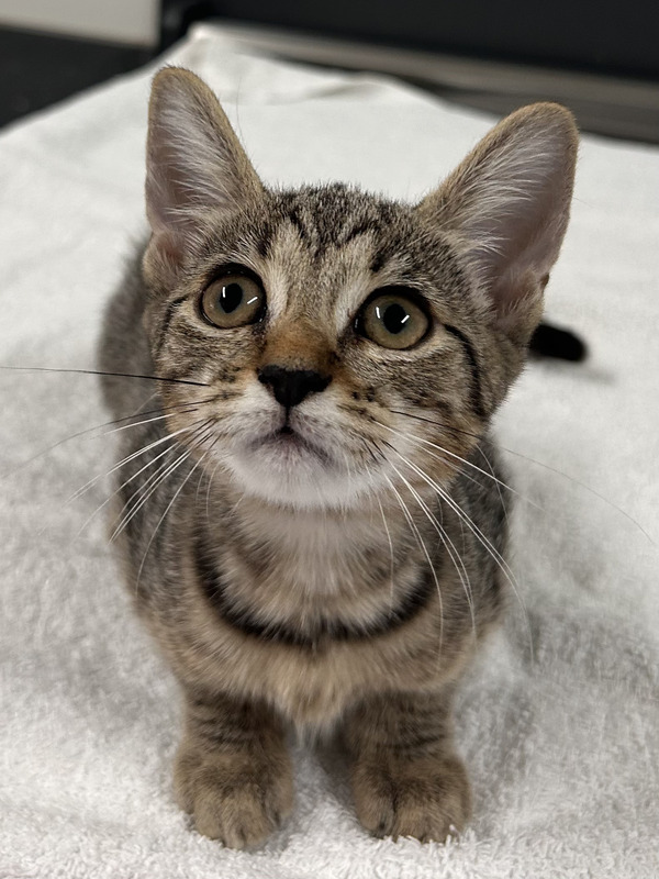 I'm a sweet little tabby girl kitten with pretty markings and a whole lot of charm - my name suits me perfectly, if I do say so myself. I'm curious about the world, love exploring new spots, and I'm always ready for playtime with toys (and maybe your shoelaces).