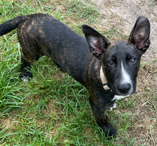 Dobby is the perfect blend of German Shepherd smarts and Bull Arab chill - a brainy, bouncy, affectionate little guy wrapped in a stunning brindle coat. He may be the smallest of his litter, but his personality is absolutely huge