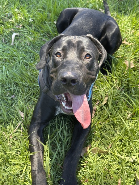 He is a very affectionate boy who enjoys leaning into you for attention and reassurance. When over-aroused he can become jumpy or mouthy, so ongoing work around calm behaviours and keeping all four paws on the floor will be important.