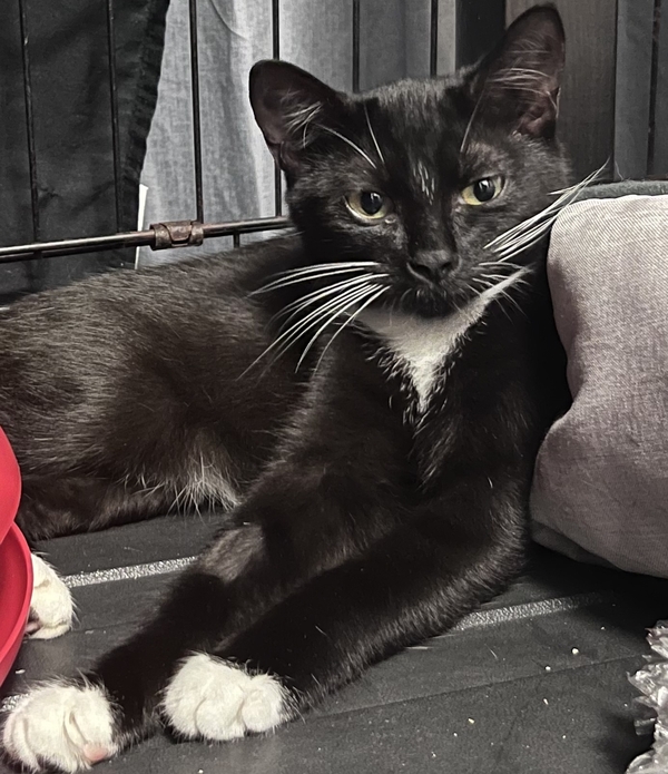 Melodie is a striking black‑and‑white domestic short hair with soft features and an even softer heart. When she first arrived in care, she was timid and unsure of the world around her. But with patience, kindness, and a lot of gentle encouragement, she has slowly let her walls come down.
