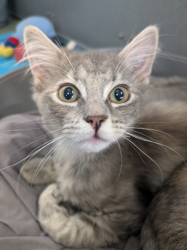 Elle is an adorable young kitten with a gentle nature and a playful spirit. She loves discovering new toys, practicing her tiny pounces, and exploring the world with wide‑eyed curiosity.
