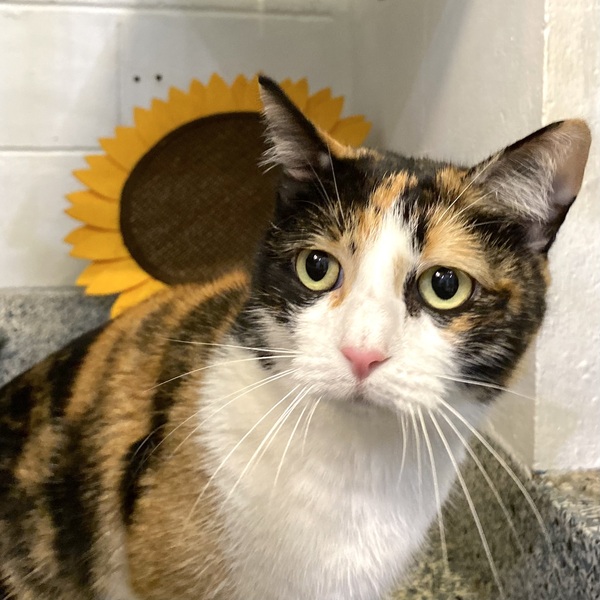 Please stop scrolling right here! We have the perfect cat for you wrapped up in a cuddly, affectionate bundle of fur. On the outside, Izzy is a glorious calico-coloured feline in tones of white, black and tortoiseshell. Her eyes are a yellowish-green colour and they love to make contact with your eyes. On the inside, Izzy's nature is cuddly and affectionate, meaning she wants you to be her friend. You'll find that when she becomes your companion in your home, there she'll be, looking at you, waiting for attention. Please read our important details for her care:-
