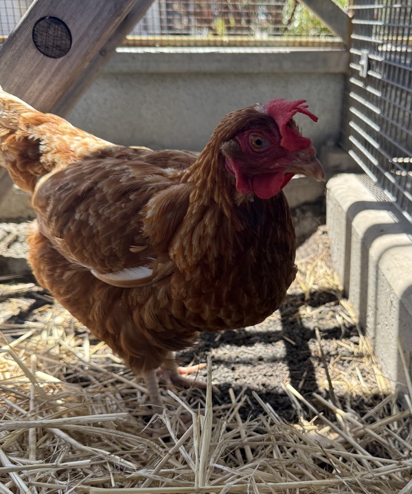 Isla is a beautiful brown hen with a gentle heart and a curious spirit. With her warm chestnut feathers and bright, intelligent eyes, she brings a calm and comforting presence wherever she goes. She's the kind of chicken who enjoys exploring her surroundings at her own pace, happily scratching in the dirt and chatting softly with her little clucks.