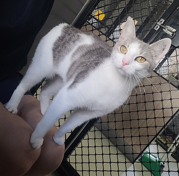 Kath would thrive in a home with older children who understand cat body language and will respect her space. She's not suitable for young kids, as she will warn when she's uncomfortable.