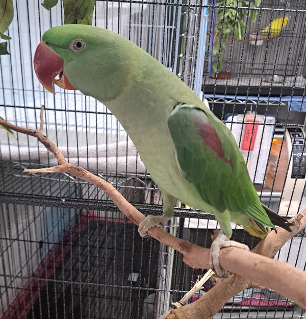 Prince John is a young Alexandrine with a royal name and a delightfully cheeky streak. ππ Still finding his confidence, this little noble is full of curiosity, soft chatter, and just a liiitle hint of mischief. While not yet confident enough to step up just yet, he'll want to be with you SO badly, he'll even let himself out of his if the doors aren't secured... ;) With patience and gentle guidance, he's sure to reign over your heart in no time.