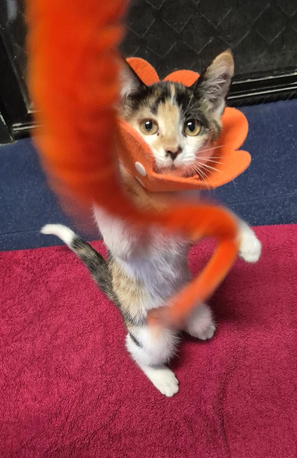 Molly is an adorable kitten with a big personality and an even bigger love for playtime! She's full of energy, curiosity, and kitten mischief - whether she's chasing toys, exploring new spaces, or pouncing on anything that wiggles, Molly always keeps life fun.