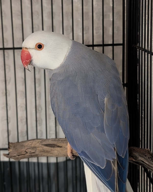 Billy is a male Indian Ringneck with a bright, intelligent nature who enjoys mental stimulation and routine. He will need a spacious, secure cage with natural perches, toys, and daily opportunities for enrichment and supervised out-of-cage time. A balanced diet of quality pellets, fresh vegetables and greens, with fruit and seeds given in moderation, is essential for his ongoing health.